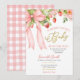 Convite de Chás de Bebê Morango, Convite de Chás de Bebê Doce Morango Rosa, Convite de Chás de Bebê Laço Rosa Coquete