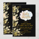 Convite de Chás de Bebê Preto Floral Dourado Elega