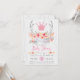 Convite de chá de bebê tribal feminino com chifres florais rosa e dourado e faixa com coroa de brilho rosa em um fundo de madeira branca rústica. Você pode personalizar facilmente este lindo convite de chá de bebê tribal boho rústico para o seu evento, simplesmente adicionando seus detalhes. Este é um design impresso sem brilho real, etc.