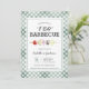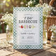 Acenda a grelha e celebre o casal feliz com este convite de chá de casamento para casais I DO Barbecue! Perfeito para uma festa ao ar livre divertida e casual no quintal, este design apresenta um fundo xadrez gingham azul-teal suave, uma ilustração de espeto suculento e uma mistura de tipografia em negrito e manuscrita.