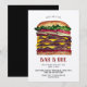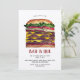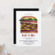 Convite de churrasco, hambúrguer gigante. Divulgue seu aniversário de churrasco com estilo com este belo hambúrguer em aquarela, empilhado com hambúrgueres / ketchup e muito queijo! Perfeito para qualquer evento de churrasco / ao ar livre. Basta personalizar o texto com seus próprios detalhes.