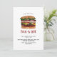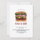 Convite de churrasco, hambúrguer gigante. Divulgue seu aniversário de churrasco com estilo com este lindo hambúrguer em aquarela, empilhado com hambúrgueres / ketchup e muito queijo! Perfeito para qualquer evento de churrasco / ao ar livre. Basta personalizar o texto com seus próprios detalhes.