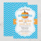 Convite de Churrasco de Bebê Abóbora de Outono Chevron Azul. Para personalização adicional, clique no botão "Personalize" e use nossa ferramenta de design para modificar este modelo.