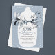 Convites de churrasco de bebê temáticos de azul inverno elegantes, apresentando uma mamadeira branca com uma exibição de folhas de aquarela, samambaias e frutas em vários tons de azul, completo com um modelo de convite moderno. Todos os estilos de fonte e cores de fundo são facilmente alterados clicando no link personalizar ainda mais após a personalização.