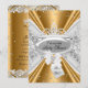 Convite de churrasco de bebê dourado e prateado. Elegante coroa de princesa com brilho e desenho de damasco floral prateado. Por favor, note: todas as imagens planas, elas não têm joias reais!