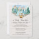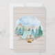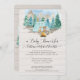 "Convite de Churrasco de Bebê em Aquarela com Veado da Floresta." Fundo macio de madeira cinza com floresta de pinheiros pintada em aquarela, montanhas e céu. Animais fofos da floresta estão acampando juntos com o texto tipográfico, "Que a Aventura Comece". Criado e projetado pela artista internacionalmente conhecida e licenciada, Audrey Jeanne Roberts. Direitos autorais.