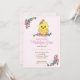 Celebre seu pequeno feixe de alegria com este convite de chá de bebê doce e caprichoso, apresentando um adorável pintinho de bebê cercado por flores cor-de-rosa e azuis suaves. Perfeito para um chá de bebê com tema de primavera ou jardim, este charmoso design traz um toque caloroso e alegre para o seu dia especial.