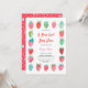 Este design doce de morango apresenta um convite de churrasco de bebê doce e moderno com morangos pintados à mão em vermelho e rosa com pequenos acentos azuis e verdes. Veja a coleção completa para mais itens correspondentes! Arte original de Caroline Bonne Müller