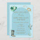 Com um design moderno e cores suaves. Este convite de churrasco de bebê com tema "Não É Nosso Primeiro Rodeio" em azul simples pode ser personalizado com os detalhes do seu evento especial, com um fundo azul claro no verso. Criado por CelebrateWithInk©