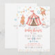 Convite de churrasco de bebê neutro com cores pastéis e adoráveis animais de circo é fácil de editar com data, hora e detalhes do registro de presentes no verso.