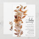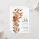 Convite de Churrasco de Bebê Outono Elegante. Este convite de churrasco de bebê elegante e rústico apresenta folhas de laranja queimada e terracota pintadas à mão em aquarela, dálias creme e bege, e belas rosas cor de ferrugem perfeitas para um casamento de outono! A parte de trás do convite tem um fundo branco simples com um buquê coordenado.
