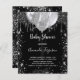 Um fundo preto elegante. Decorado com brilho e balões de prata falsa. Personalize e adicione um nome, detalhes da festa. O nome é escrito com uma fonte manuscrita