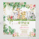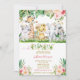 Convite de Churrasco de Bebê Safari Bundle, Convite de Churrasco de Bebê Menina Jungle, Convite de Churrasco de Bebê Animal Safari Editável com Folhagem e Rosa