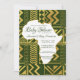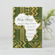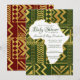 Este Convite de Churrasco de Bebê Tribal Africano apresenta elementos tribais em dourado falso, centro em forma de África e cores de fundo mutáveis. Você pode personalizar este convite inspirado na África para se adequar a qualquer esquema de cores que combine bem com os elementos dourados.