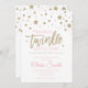 Convite de Churrasco de Bebê Twinkle Twinkle Little Star com brilho dourado e estrelas rosa.