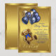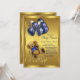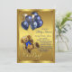 Convite de churrasco de bebê ursinho de pelúcia com adorável ursinho de pelúcia e belos balões azuis reais e dourados em um lindo fundo dourado. Este convite de churrasco de bebê ursinho de pelúcia é facilmente personalizado para o seu evento, basta adicionar seus detalhes.