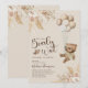 Convites de churrasco de bebê boêmio menino elegante com fundo marrom claro, urso de bebê menino aquarela vintage, balões, grama pampas rústica boho e flores, além de um modelo de churrasco de bebê moderno fácil de personalizar.
