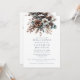 Este convite de churrasco de noiva elegante, boho, rústico, com floral de aquarela e pinha pode ser personalizado com as informações do seu churrasco de noiva em tipografia moderna e sofisticada com um código QR de registro no verso. Criado por Thisisnotme©