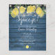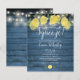 Com limões, folhagens e lindas luzes de corda em um fundo de madeira rústica azul, este convite de churrasco de noiva pode ser personalizado com as informações do seu evento especial. Criado por Thisisnotme©