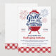 Convide amigos e familiares para uma Celebração do Quatro de Julho com este convite "Grelhar e Relaxar Juntos". O design apresenta uma ilustração clássica de grelha com fogos de artifício e tipografia personalizada para enfatizar o grelhar e relaxar que acontecerá juntos! A parte inferior do convite inclui xadrez vermelho clássico de piquenique para preparar o cenário para uma celebração antiga e boa!