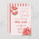 Algo doce está a caminho! Este convite tão doce apresenta um grupo de melancias rodeando fontes modernas e fofas em uma cor vermelha doce. Um fundo de aquarela rosa suave une tudo para um convite de churrasco único e delicioso!