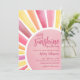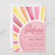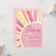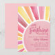 Um raio de sol está a caminho! Celebre a chegada iminente com este convite de baby shower doce e alegre com tema de sol. Um grande sol preenche o design, apresentando um centro rosa bebê suave com raios rosa coordenados para um visual quente e radiante. A redação do evento é centralizada dentro do sol em lindas fontes rosa, misturando estilos modernos e clássicos para um visual suave e equilibrado.