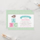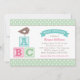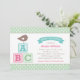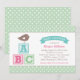 Este convite de chuvá de bebê tema alfabeto adorável apresenta um passarinho fofo empoleirado em blocos de letras ABC coloridos com um título em faixa e borda de bolinhas verde menta fresca. O design doce e moderno é perfeito para uma celebração de menina. Toda a redação é totalmente personalizável para o seu evento.
