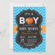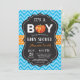 Cartão de Convite de Chuvada de Bebê Abóbora Outono com chevron azul, laranja e fundo de quadro-negro. Para personalização adicional, clique no botão "Personalize" e use nossa ferramenta de design para modificar este modelo.