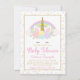 Convites de chuvada de bebê unicórnio com adorável face de unicórnio floral rosa com chifre dourado e arco-íris e ponto pastel e fundo de face de unicórnio. Esses convites de chuvada de bebê unicórnio fofos são facilmente personalizados para o seu evento, basta adicionar seus detalhes.