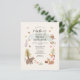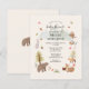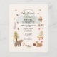 Simplesmente crie um convite de chuvada de bebê com animais da floresta com este modelo apresentando uma coruja, raposa, urso, esquilo, cervo, cogumelos e mais para o tema cottage core para a futura mamãe.