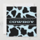 Deixe todos saberem que aquele pequeno caubói está a caminho com este divertido convite de chuvada de bebê com impressão de couro de vaca em preto e azul bebê.