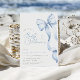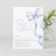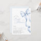 Este convite elegante apresenta um charmoso laço azul claro e uma escrita romântica à mão, perfeito para uma chuvada de bebê menino caprichosa. O laço chique e o design elegante adicionam um toque de sofisticação, enquanto o modelo editável permite uma fácil personalização. Crie um convite lindo e memorável para o seu evento especial.