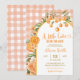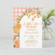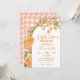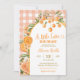 Convite de Chuvada de Bebê de Cute Cítrico de Verão, Um Pequeno Cute Está a Caminho Convite de Chuvada de Bebê, Convite de Chuvada de Bebê Xadrez Laranja Editável