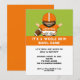 Convites criativos de chuvada de bebê com tema de futebol com adorável bebê jogador de futebol em uniforme laranja.