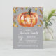 Convite de Chuvada de Bebê de Outono com Abóbora. Fundo Cinza. Convite de Chuvada de Bebê de Outono. Convite de chuvada de bebê para menino ou menina. Para personalização adicional, clique no botão "Personalize" e use nossa ferramenta de design para modificar este modelo.