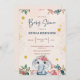 Convite de Chuvada de Bebê Elefante Floral Fofo