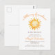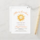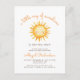 Este convite de chuvada de bebê em formato de cartão postal apresenta uma ilustração em aquarela de um sol com um rosto sorridente. Acima, as palavras "um pequeno raio de sol" aparecem em uma fonte manuscrita laranja trendy. Personalize o texto com o nome da futura mamãe em fonte laranja e os detalhes em fonte sans serif marrom.