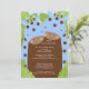 Convite de chuvada de bebê de gêmeos adorável com um par de girafas azuis com bolinhas marrons em um fundo de folha da selva. Itens combinando disponíveis em nossa loja. Perfeito para uma chuvada de bebê de gêmeos meninos. ©Stockberry Studio