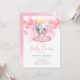 Convite de Chuvada de Bebê Menina Elefante Aquarel
