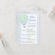 Personalize este adorável convite de chuvada de bebê menino Balão de Ar Quente azul com as informações da sua chuvada de bebê na área de personalização. Cores azul e verde.