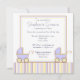 Duas vezes o divertido! É o anúncio neste convite de chuvada de bebê que apresenta dois adoráveis carrinhos de bebê azuis com listras azuis, amarelas e marrons.