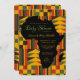 Este Convite de Chuvada de Bebê Tribal Africano apresenta elementos tribais em dourado falso, centro em forma de África e cores de fundo mutáveis. Você pode personalizar este convite inspirado na África para combinar com qualquer esquema de cores que combine bem com os elementos dourados.