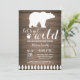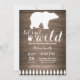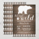 Convite de Chuvada de Bebê Urso Polar Rústico. Convite de chuvada de bebê de inverno. Convite de chuvada de bebê para menino ou menina. Vamos ficar selvagens. Convite de chuvada de bebê de férias de inverno. Fundo de madeira rústica. Celeiro retrô vintage do país. Para personalização adicional, clique no botão "Personalize" e use nossa ferramenta de design para modificar este modelo.