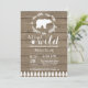 Convite de Chuvada de Bebê Urso Polar Rústico. Convite de chuvada de bebê de inverno. Convite de chuvada de bebê para menino ou menina. Vamos ficar selvagens. Convite de chuvada de bebê de férias de inverno. Fundo de madeira rústica. Celeiro retrô vintage country. Para personalização adicional, clique no botão "Personalizar" e use nossa ferramenta de design para modificar este modelo.