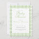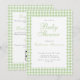 Um convite duplo lado fofo e sofisticado para um chá de bebê neutro em relação ao gênero, apresentando xadrez verde-sage com uma borda rendilhada. O verso tem espaço para informações sobre a lista de presentes do bebê e outros eventos da festa. Adicione o site ao código QR para personalizar a seção escaneável do convite para seus convidados. Perfeito para um chá de bebê elegante para dar as boas-vindas ao seu novo bebê.