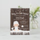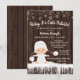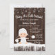 Convite de chuvade bebê Baby it's cold outside com adorável bebê vestindo um traje de neve branco com chapéu em um fundo rústico de madeira e floco de neve. Estes convites de chuvade bebê de floco de neve de inverno são facilmente personalizados para o seu evento, basta adicionar seus detalhes. Este design funciona bem para um convite de revelação de gênero de floco de neve ou inverno.