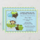 Adorável convite de chuvade de bebê com macaco em tons de azul, verde e marrom, perfeito para um MENINO...macaco bebê fofo em uma carruagem.