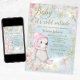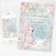 Convite de chuvade bebê garotinha está frio lá fora com adorável ursinho em um lindo fundo floral pastel de flocos de neve. Este convite de chuvade bebê do ursinho é facilmente personalizado para o seu evento, basta adicionar seus detalhes. O texto bebê está frio lá fora não pode ser alterado.