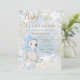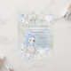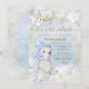 Convite de chuvade de bebê menino, está frio lá fora com adorável ursinho em um lindo fundo floral pastel com flocos de neve. Este convite de chuvade de bebê menino urso é facilmente personalizado para o seu evento, basta adicionar seus detalhes. O texto 'Bebê, está frio lá fora' não pode ser alterado.