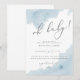 Oh bebê lindo e moderno! convite de chuveirinho de bebê com aquarela azul. O convite perfeito para um tema de chuveirinho de bebê azul!